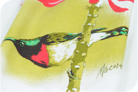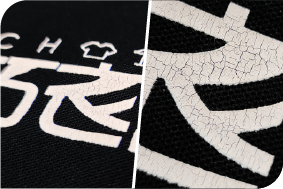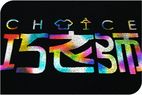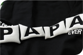 布料裁切成圖案或文字再繡縫於衣服上,一般用於較大面積的圖案。