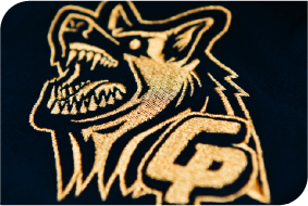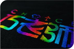 最普遍的繡花方式,完稿後電腦製版,LOGO經由繡花機直接繡在衣服上。