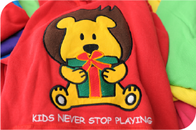 將LOGO繡在指定布塊製成碧章,背膠後高溫燙壓於衣服指定位置。